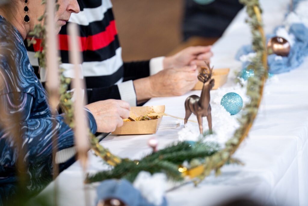 Zwei lange, festlich geschmückte Tafeln erwarteten unsere Gäste – und auch kulinarisch wurde Großes aufgefahren: Rote-Bete-Suppe, Mac and Cheese, Burger, Gemüse-Curry, Spätzle mit Gulasch, Pizza, Kaiserschmarrn und Kuchen waren nur ein Teil der Köstlichkeiten, die die Betriebe mitgebracht hatten.
