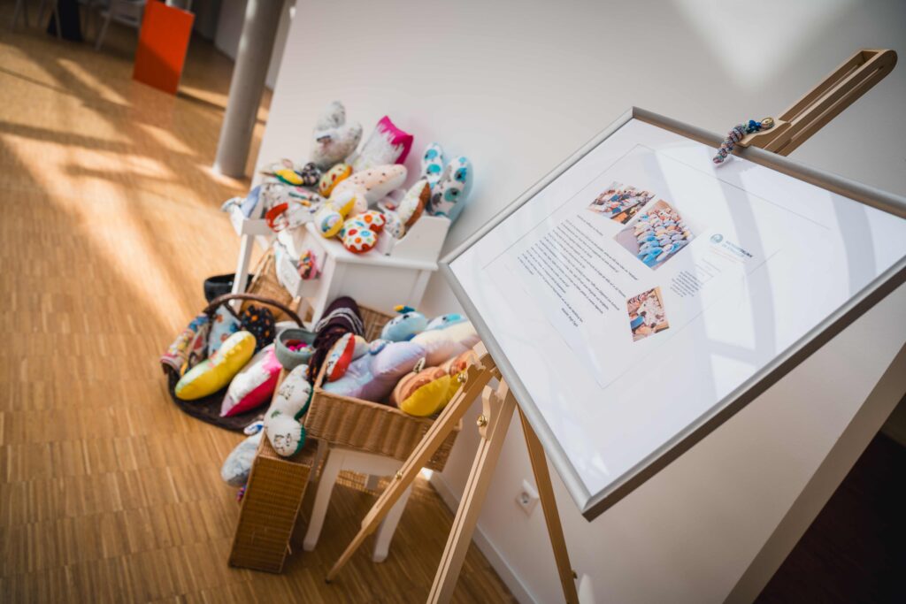 - Fleißig genäht, gehäkelt und gestrickt wird bei den Stofffrauen Strausberg. Dabei entstehen unter anderem Herzkissen und Glücks-Anhänger für unsere kleinen und großen Gäste.