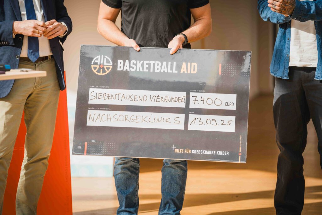 - Basketball Aid e. V. hat 7.400 Euro für den Bau unseres Sportplatzes gesammelt. Zusammen mit dem meistgehörten Basketball-Podcast „Sidelines“ kamen weitere 3.000 Euro zusammen. Hiermit werden wir einen transportablen und höhenverstellbaren Basketballkorb anschaffen.