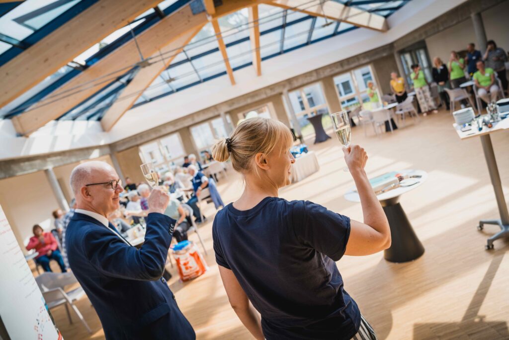 Noch müssen wir etwas Geduld aufbringen, bis wir unsere ersten Rehabilitand*innen begrüßen dürfen. Jedoch gibt uns diese Zeit die Möglichkeit, die Klinik auf anderem, ganz besonderen Weg mit Leben zu füllen. So geschehen im September 2025, als wir uns in feierlichem Rahmen bei unseren bisherigen Unterstützer*innen für ihren teils unermüdlichen Einsatz für die Nachsorgeklinik bedanken durften.