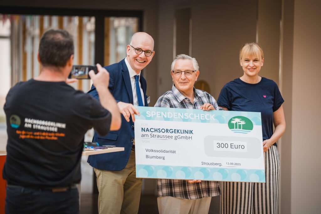 - Intensiv verbunden sind wir zudem mit den Senior*innen der Volkssolidarität Barnim, Ortsgruppe Blumberg, die ihren Besuch dafür nutzten, um uns weitere Sachspenden für die Ausstattung des pädagogischen Bereichs und obendrauf einen Spendenscheck in Höhe von 300 Euro zu überreichen.