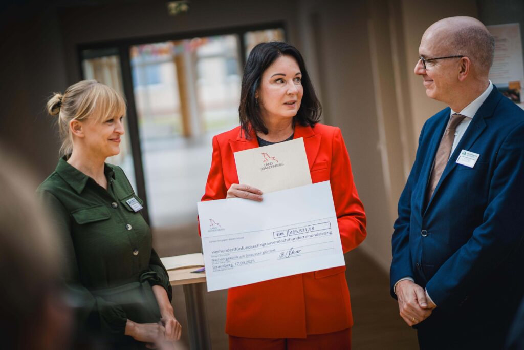 Am 17. September 2025 durften wir Britta Müller, Ministerin für Gesundheit und Soziales des Landes Brandenburg, in unserer Klinik begrüßen. Bei ihrem Besuch überreichte sie uns den Fördermittelbescheid über 466.000 Euro persönlich – ein besonderer Moment für unser gesamtes Team.
